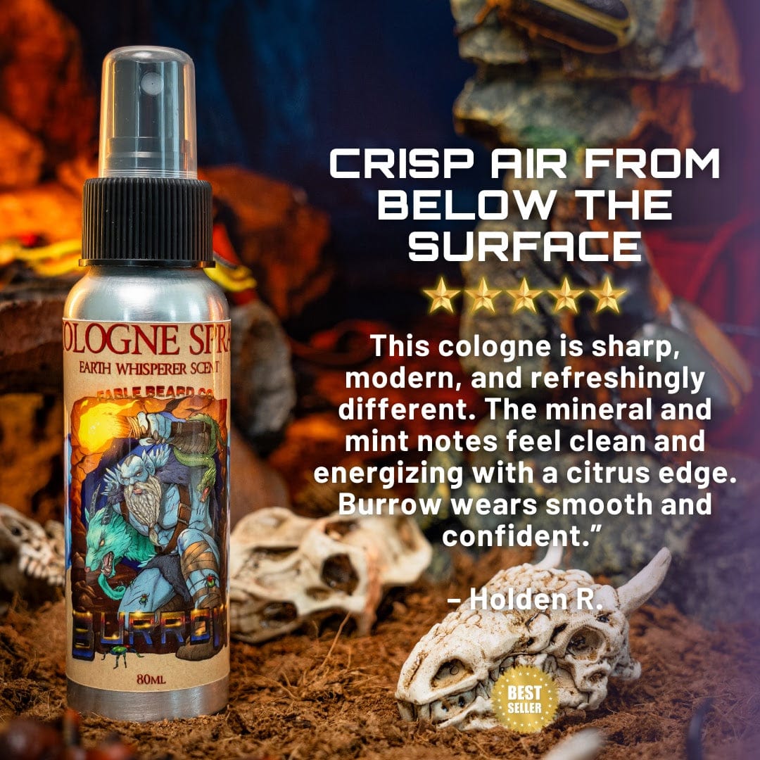 Burrow Cologne is inspired by the quiet strength of life beneath the forest floor—where roots twist through soil, tunnels weave through the earth, and nature hums with unseen activity. Calm. Patient. Observant. He moves through the world the same way nature grows underground—steady, deliberate, and impossible to ignore once discovered.