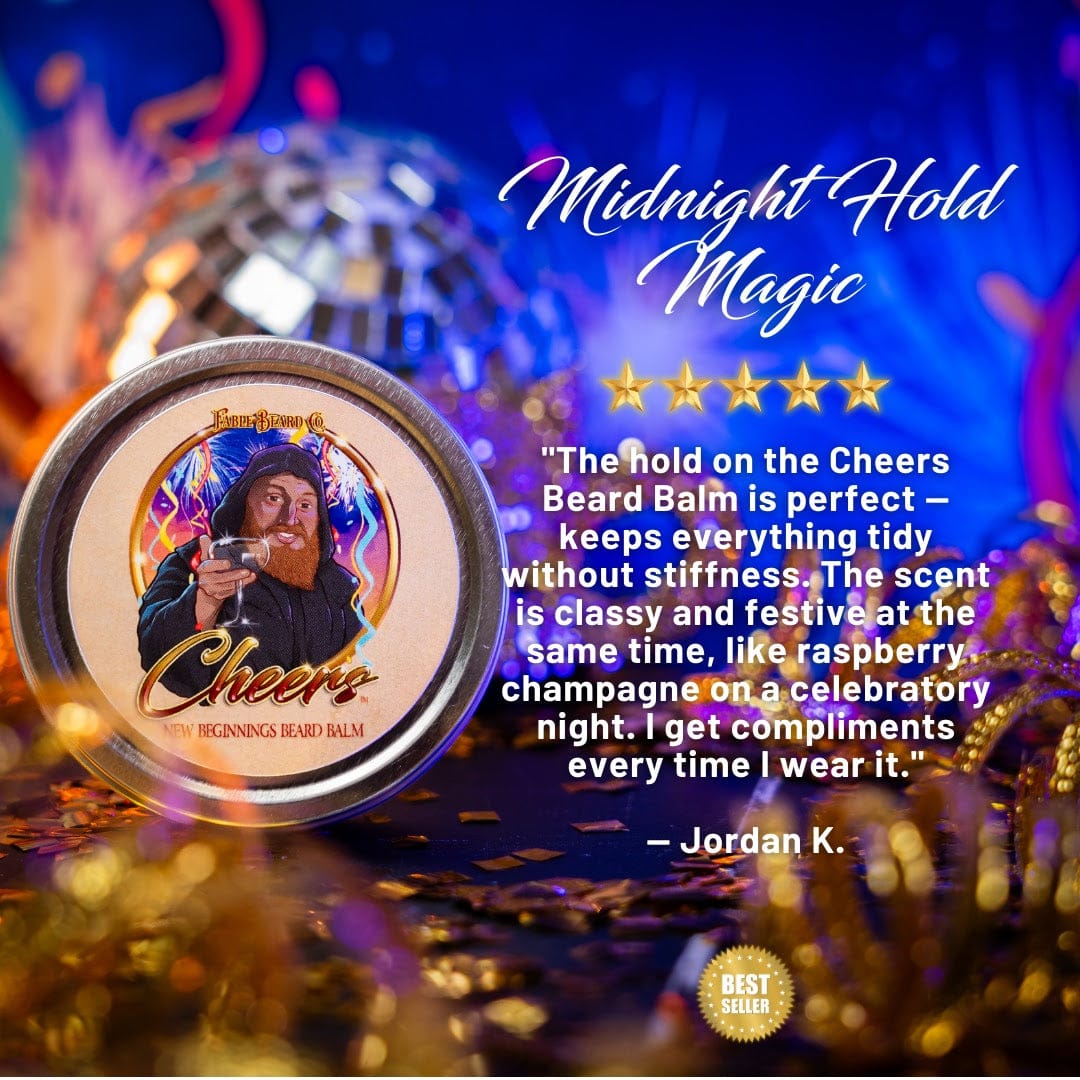 Elevate your grooming routine with Fable Beard Co.’s Complete Beard Care Kit, now featuring Cheers—a bright, celebratory scent inspired by fresh starts, raised glasses, and the optimism of a brand-new year. Designed to keep your beard healthy, soft, and impeccably groomed, this all-in-one kit is infused with an uplifting blend of Orange Crème, Juicy Tangerine, Aged Champagne, and Fresh Raspberries.