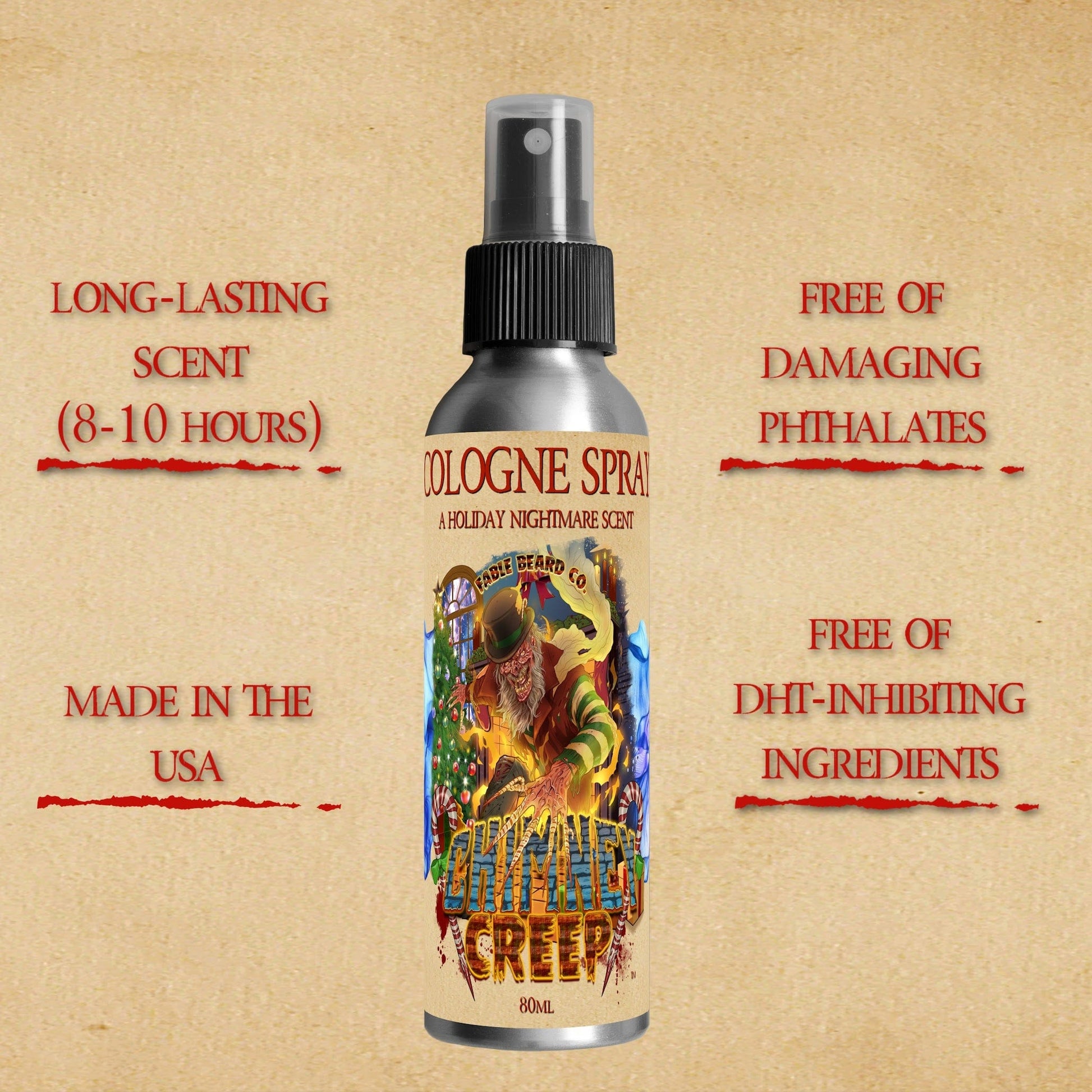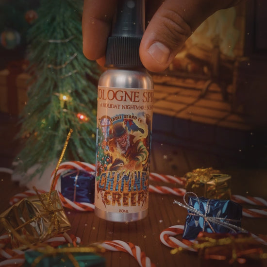 From the scorched chimneys of Christmas night, the Chimney Creep rises—grinning, soot-covered, and ready to turn holiday cheer into delicious chaos. His presence fills the air with smoldering fireplace embers, the sharp scent of singed Christmas trees, and the dark sweetness of a candy cane gone rogue. Smoky yet sweet, sinister yet magnetic—his aroma lingers long after the fire dies out. Is he a spirit of the season or the shadow that crawls behind it? With every spritz, his charm burns brighter—fiery, festive, and unmistakably wicked.