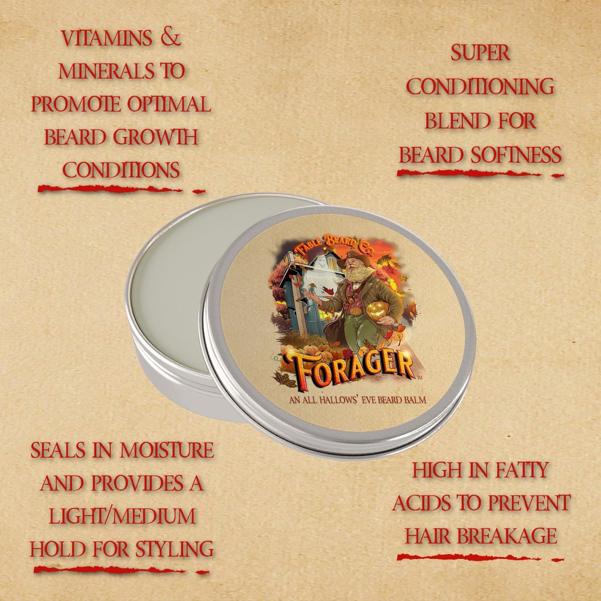 The Forager Beard Balm is crafted to shape, condition, and protect your beard with firm hold and a fragrance that lasts as long as the season’s joy.