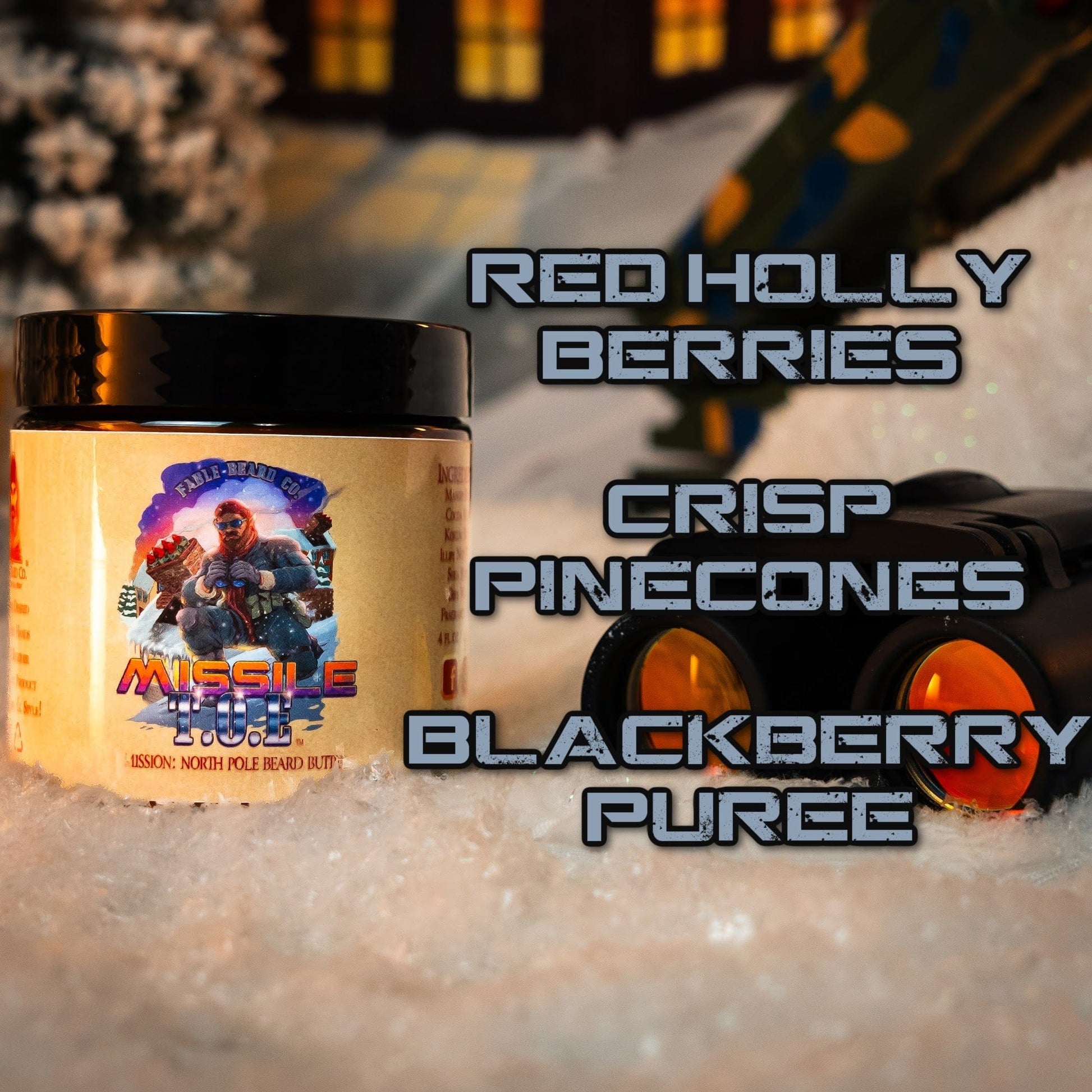 This rich, conditioning beard butter is his secret weapon—melting instantly into your beard to restore softness, strength, and command. Bold notes of Red Holly Berries ignite with festive intensity, Crisp Pinecones deliver clean woodland freshness, and Blackberry Puree grounds it all in smooth, confident sweetness.