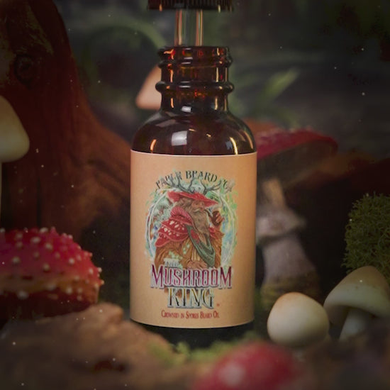 Mushroom King Beard Oil is crafted for the man who carries the steady strength of the woodland realm. Beneath towering trees where roots twist through the soil and life flourishes in hidden groves, the Mushroom King reigns over a kingdom few ever see.
