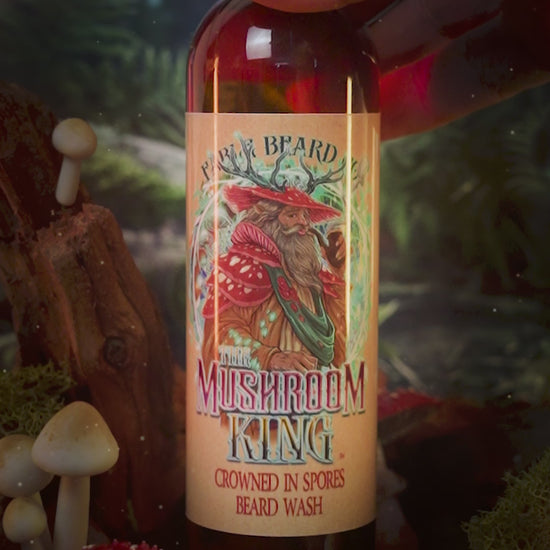 Mushroom King Beard Wash is crafted for the man who carries the quiet authority of the woodland realm. Beneath towering trees and tangled roots, where moss blankets the earth and ancient fungi flourish in hidden groves, the Mushroom King rules a kingdom few ever see.