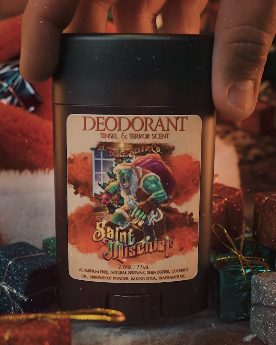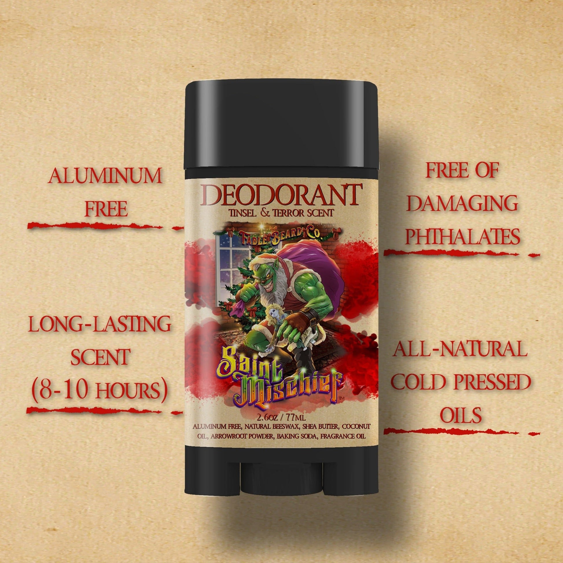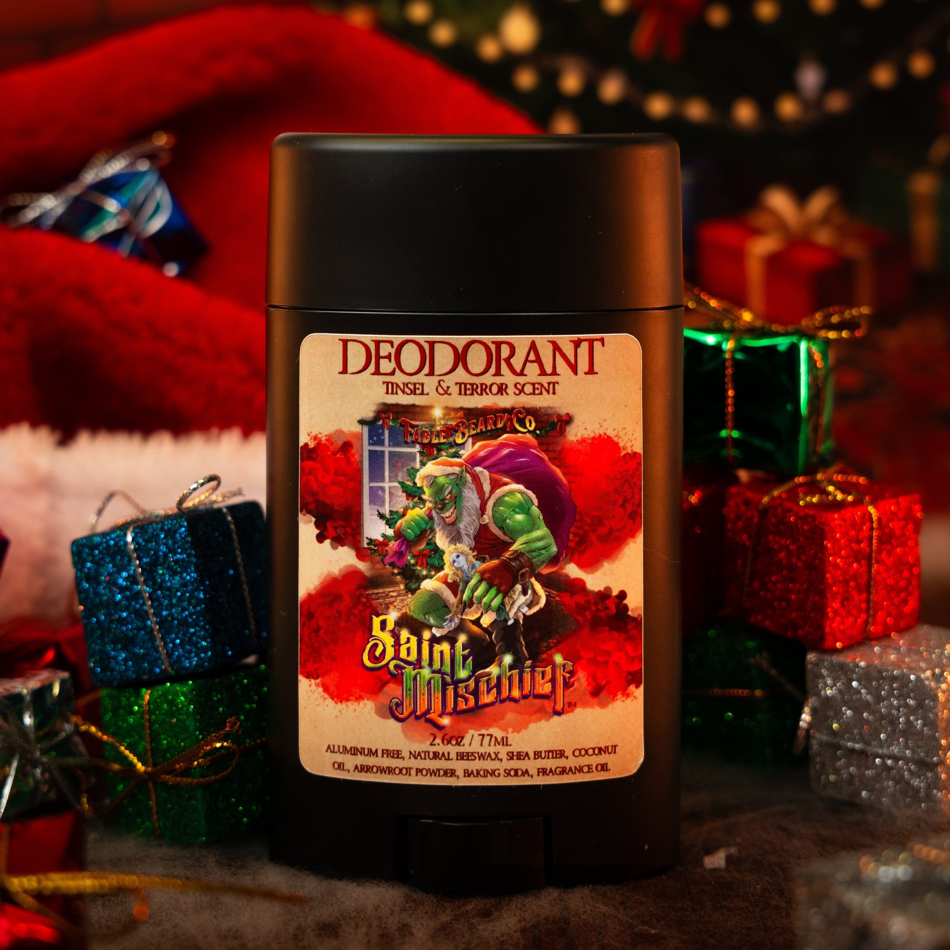 This isn’t just deodorant—it’s your invitation into holiday trouble. Stay fresh through the pranks, confident through the chaos, and deliciously fragrant as you join Saint Mischief in stirring things up.