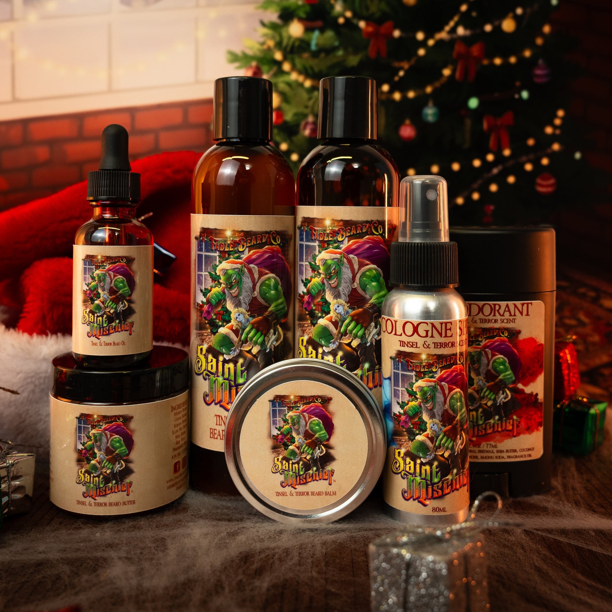This isnāt just beard careāitās the full ritual of holiday charm and chaos. Strength, control, cleansing, and confidenceāall bundled together for the bearded soul who dares to make spirits bright and a little wild. Whether youāre stirring the punch or stealing the spotlight, your beard will carry the look, feel, and scent of Saint Mischief himself.