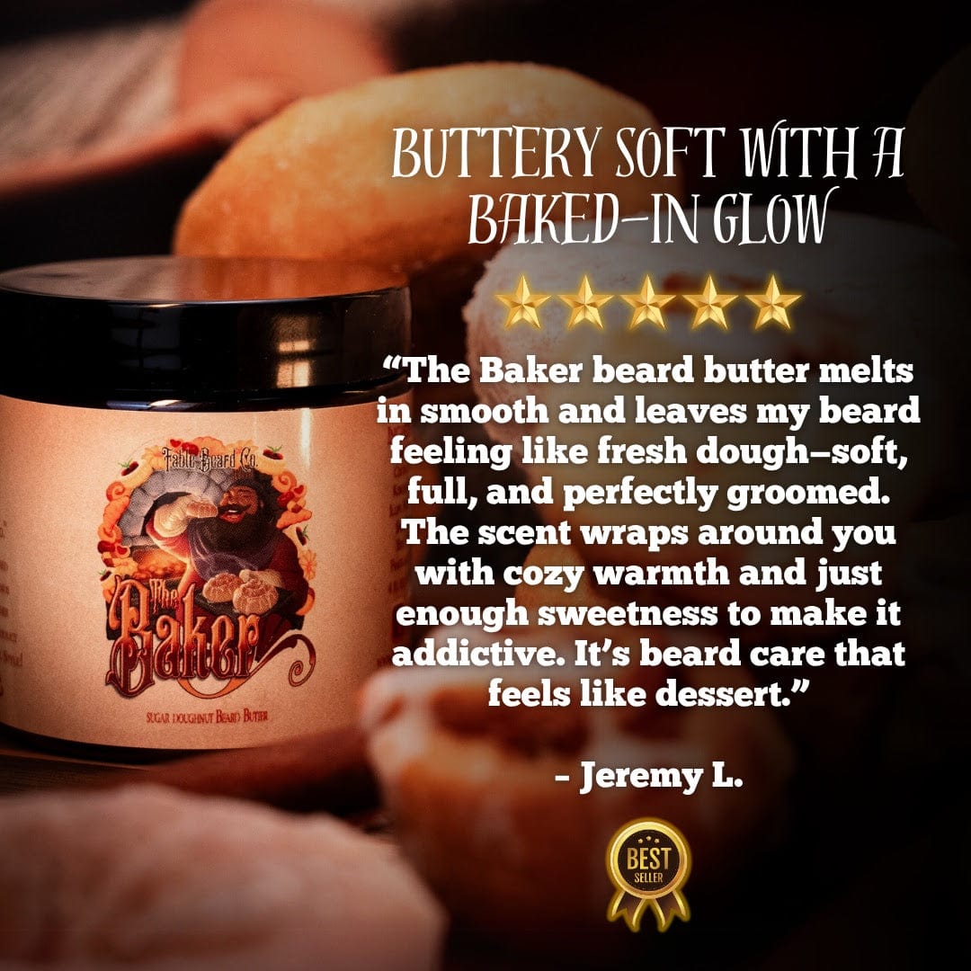 The Baker Beard Butter is crafted with five elite butters to deliver deep conditioning, lasting softness, and a scent that clings like the memory of fresh-baked comfort.