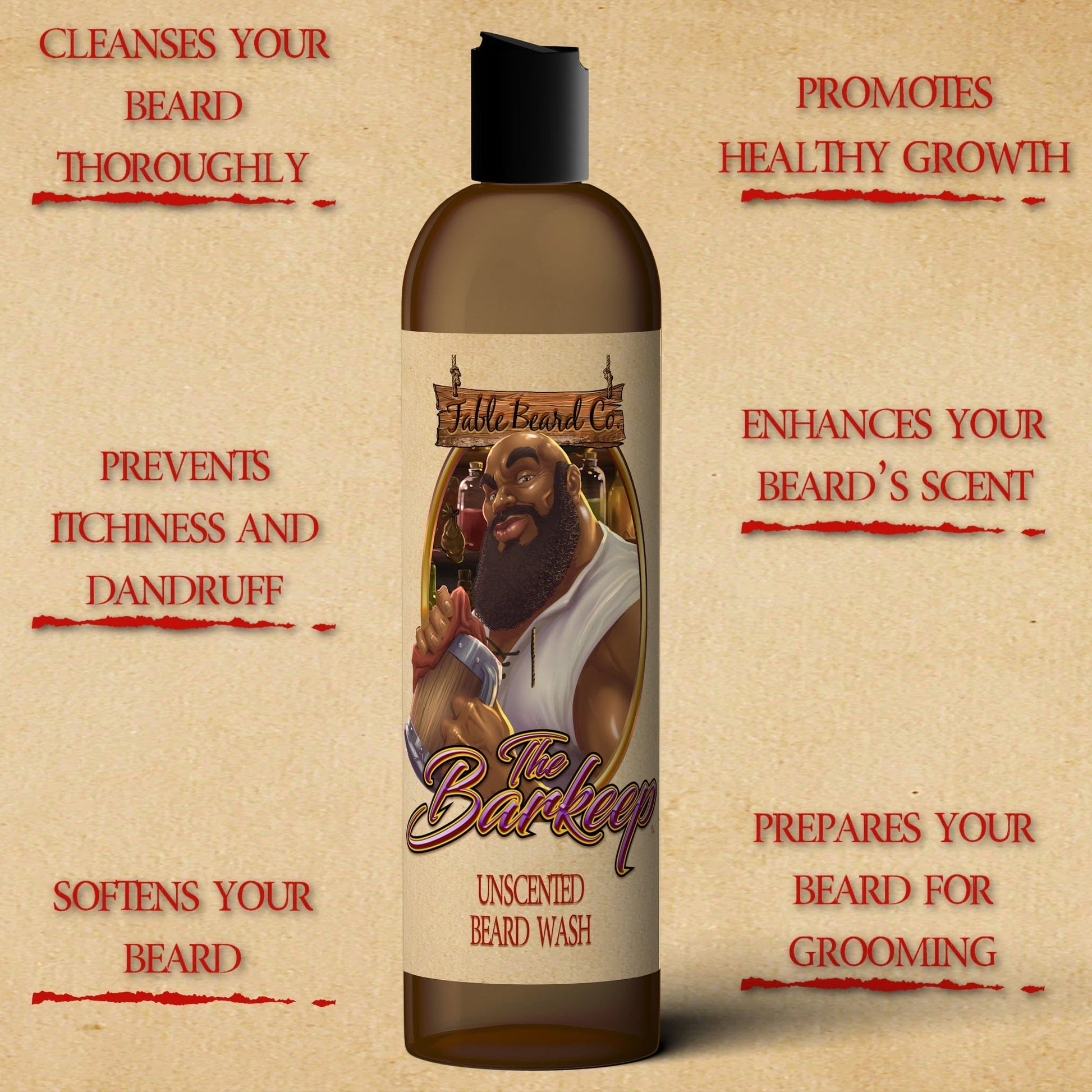 The Barkeep Unscented Beard Wash is a delightfully blended daily beard wash in Fable Beard Co's Unscented line The Barkeep. Our 8oz beard wash will give you that great beard lather and clean you are looking for while providing very minimal stripping qualities. Great for daily beard cleaning without stripping your beard down.