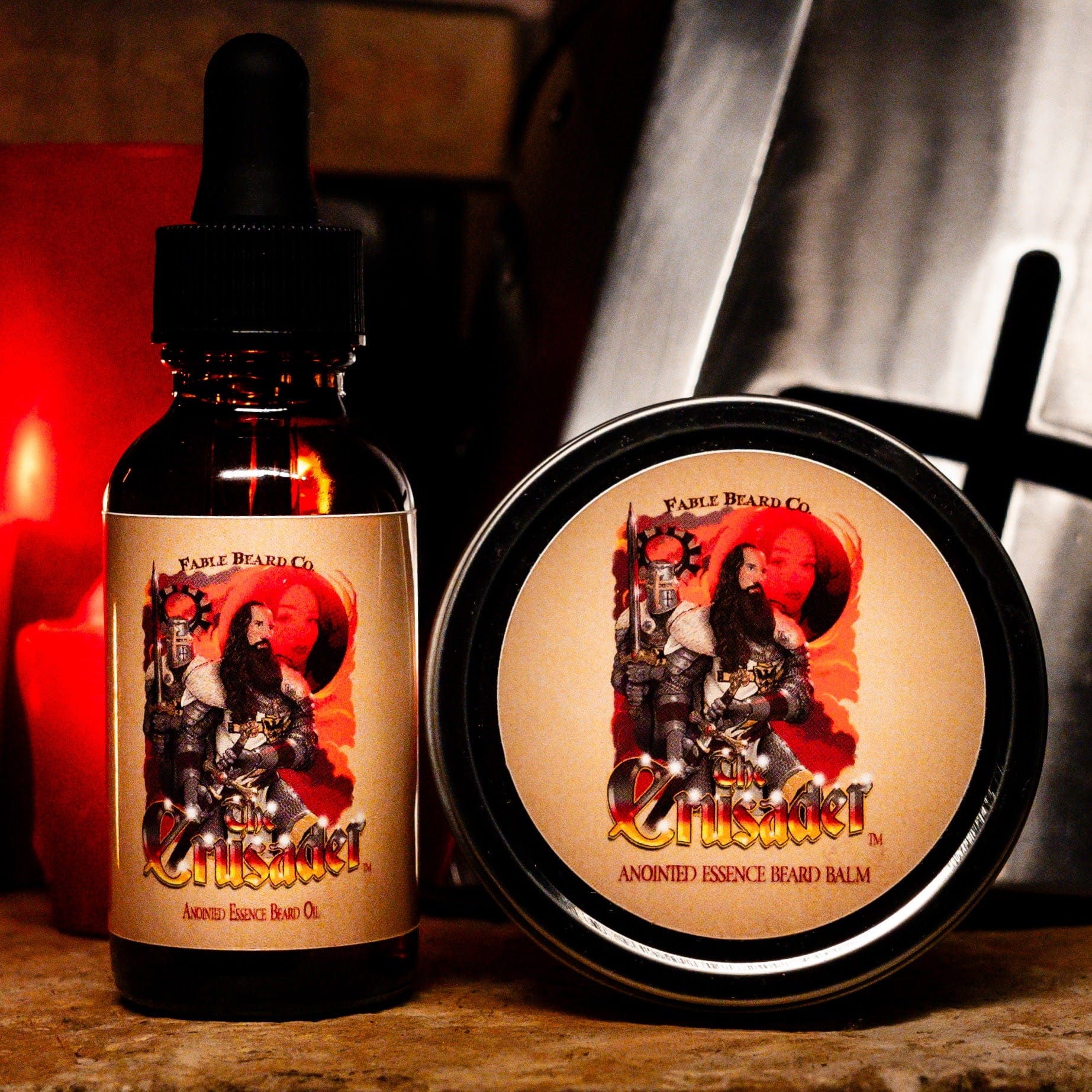 Beard Oil (1 oz): Hydrate and condition your beard with The Crusader’s signature blend of Ancient Citrus Musk, Lavender Soaked Sandalwood, and Eucalyptus Spice.