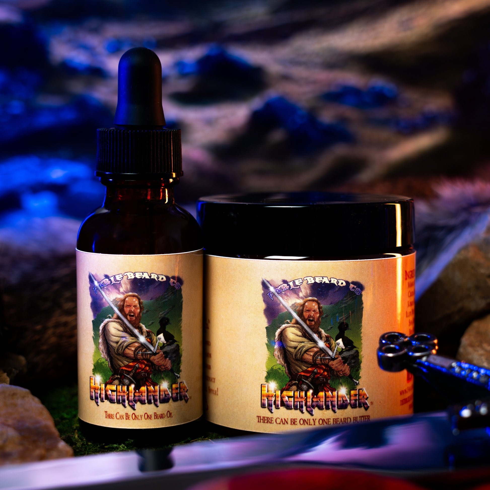 The Highlander - Beard Oil & Butter Kit - Smoked Firewood, Robust Scotch, and Nostalgic Mahogany