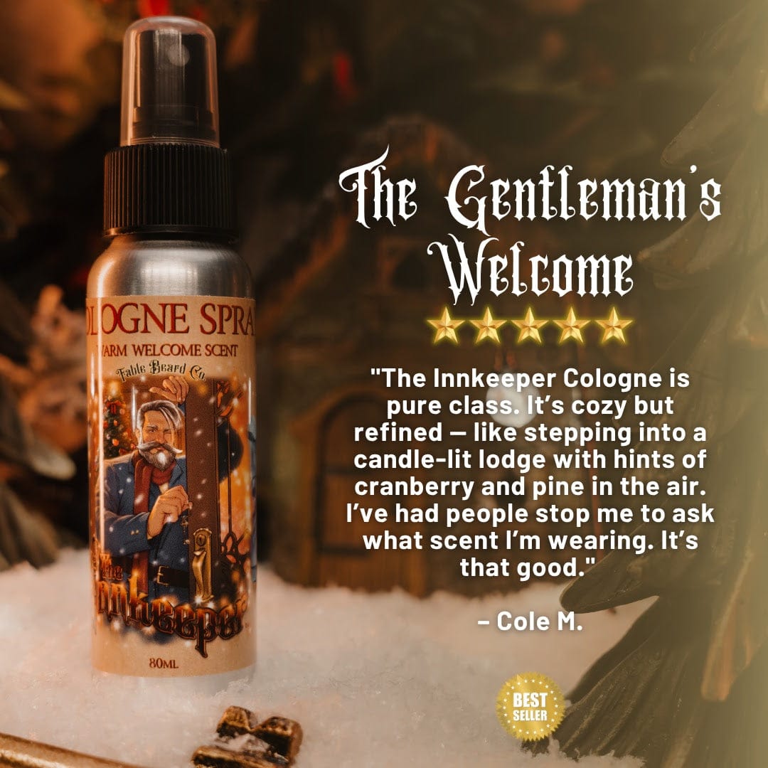 Whether you're hosting a festive gathering or adding a touch of seasonal charm to your routine, The Innkeeper is your perfect grooming companion. Let Fable Beard Co.’s premium beard oil guide your beard journey and inspire your next tale of holiday wonder.