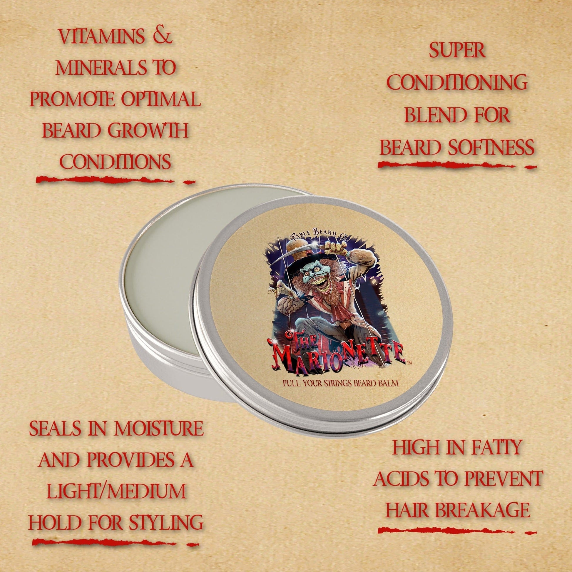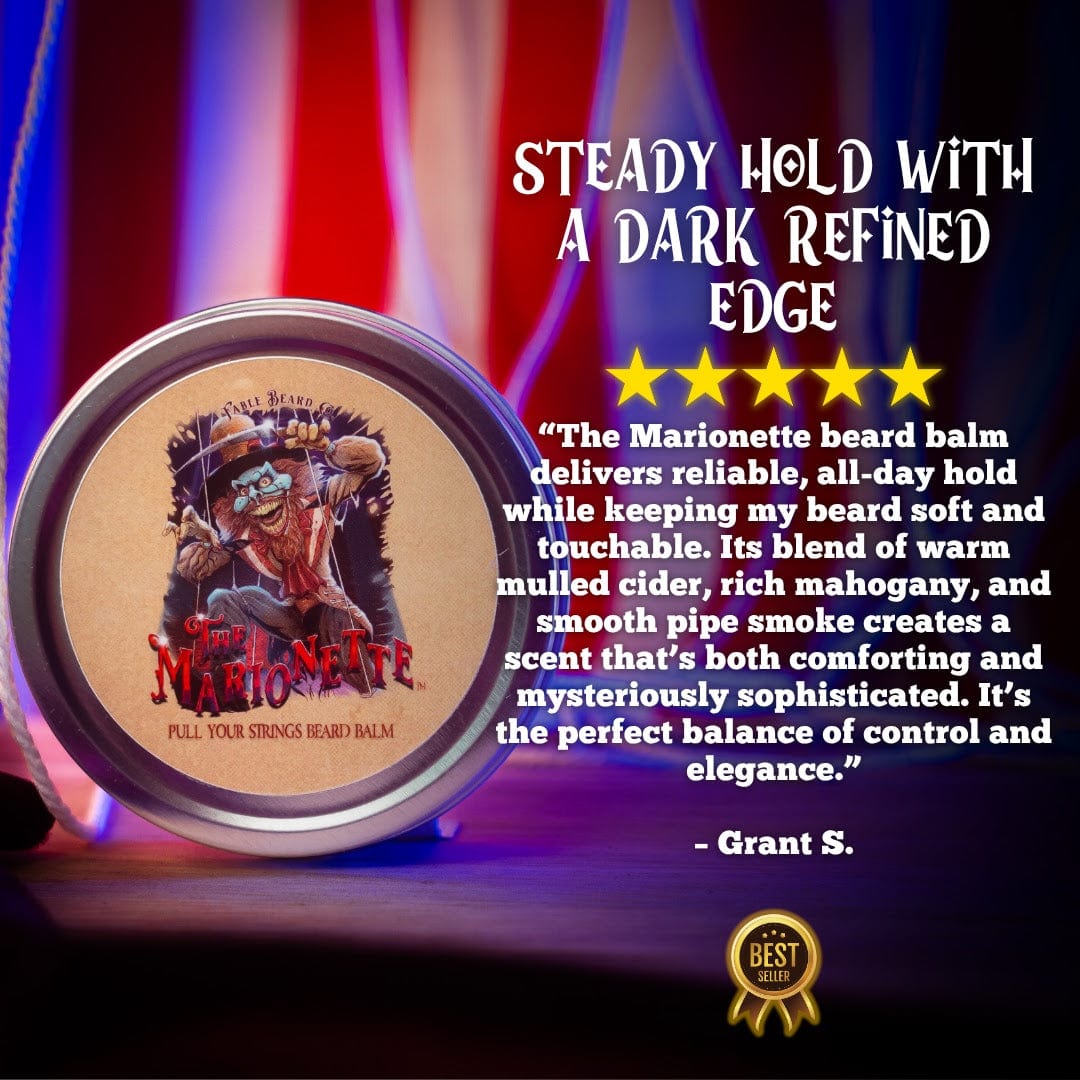 The Marionette Beard Balm is formulated to shape, condition, and control your beard with elegance stitched from shadows—and a scent that performs long after you’ve left the room.