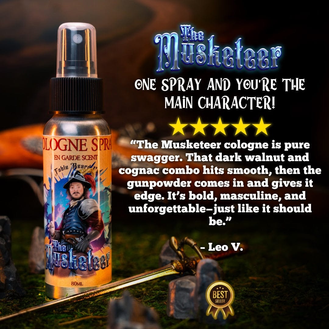 The Musketeer Cologne is crafted for those who fight with principle, speak with purpose, and live for more than applause. With premium ingredients and a commanding scent, it lingers like a whispered secret behind a victorious smile.