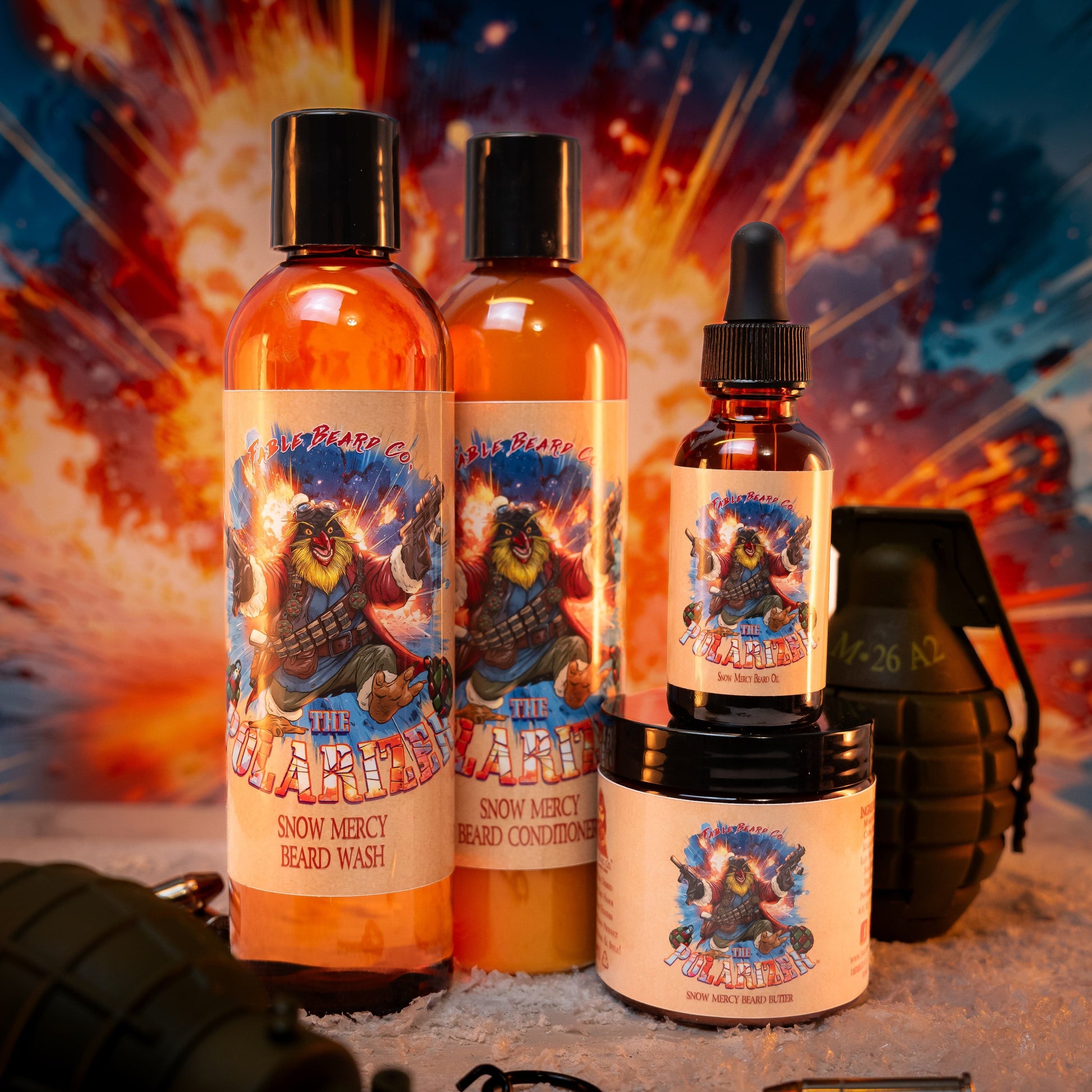 Step into the icy underground command center of Christmas security with Fable Beard Co.ās Complete Beard Care Kitāfeaturing The Polarizer, Santaās explosive penguin demolitions expert and frostbitten defender of holiday operations. This all-inclusive set arms you with everything needed for a soft, strong, chaos-ready beard, all wrapped in the decadent winter-sweet scent of Peppermint Hot Cocoa, Powdered Sugar, and Condensed Milk.