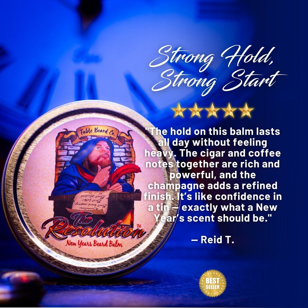 Elevate your grooming routine with Fable Beard Co.’s Complete Beard Care Kit, now featuring The Resolution—a bold, refined scent inspired by clarity, commitment, and the confidence of a fresh start. Designed to keep your beard healthy, soft, and impeccably groomed, this all-in-one kit is infused with the rich, sophisticated notes of Cuban Cigars, Brazilian Coffee, and Vintage Champagne.