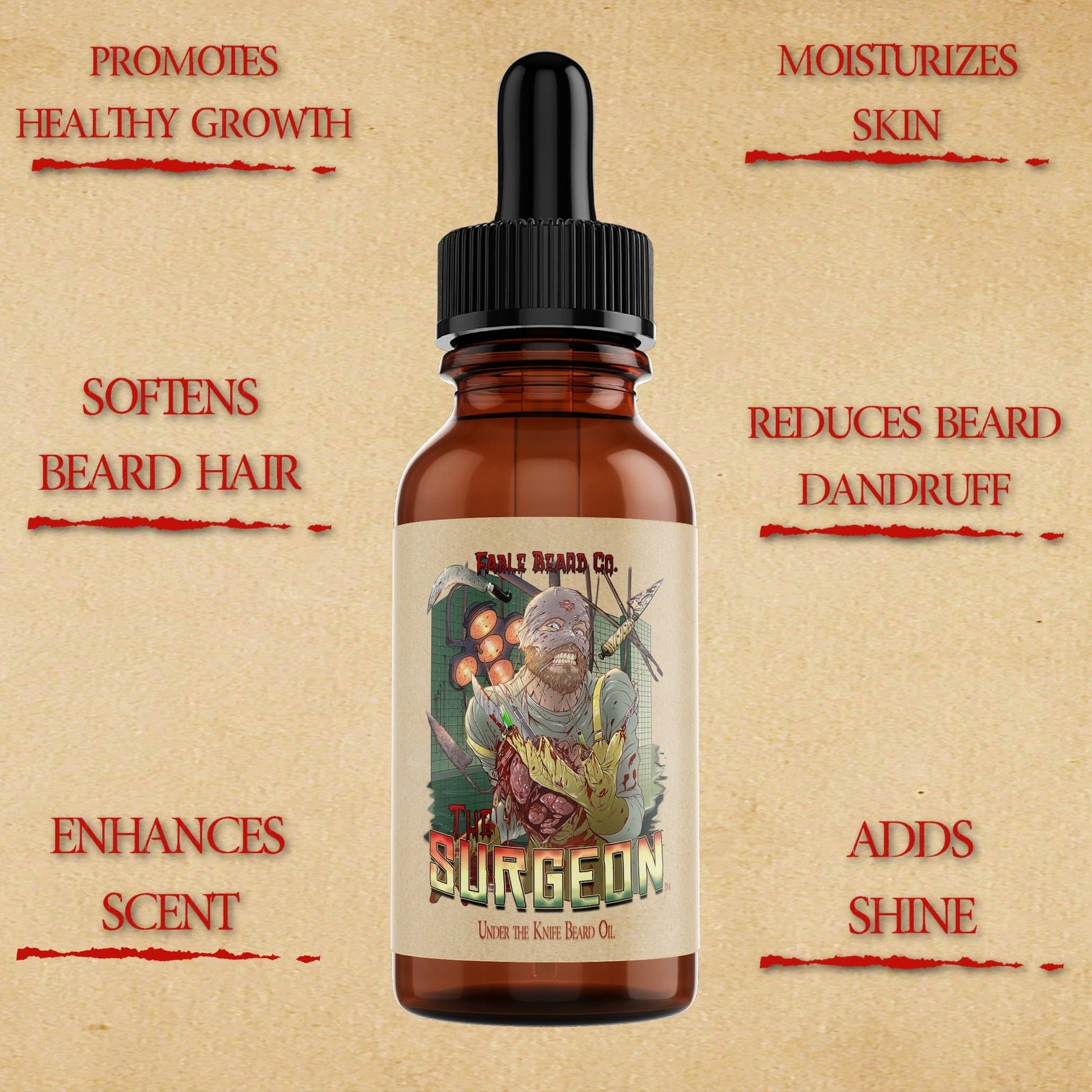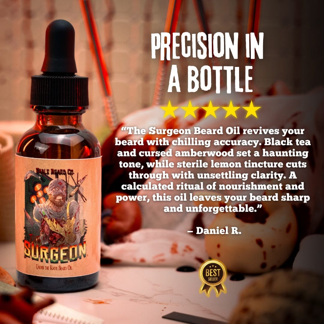 1 oz Beard Oil ā Hydrates, softens, and styles your beard with the Surgeonās cold ritual