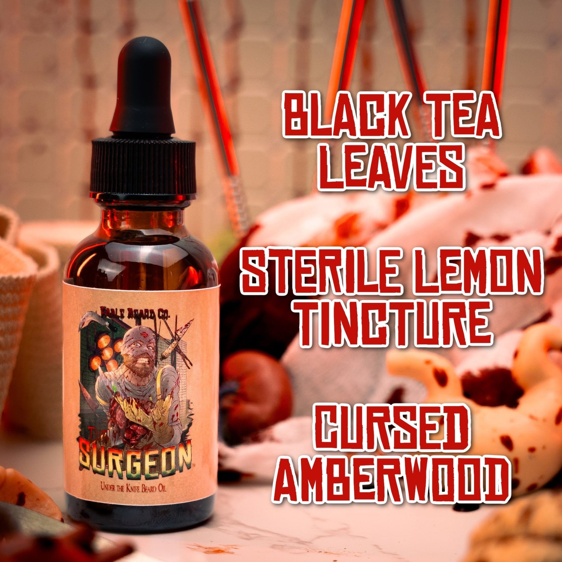 The Surgeon - Beard Oil - Black Tea Leaves, Sterile Lemon Tincture, Cursed Amberwood